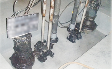 排水設備の中で環境悪化の原因である排水槽設備機能の劣化を防ぐ総合メンテナンスを定期的に実施。