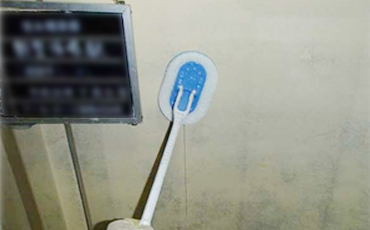 貯水槽専用洗剤による壁面清掃中