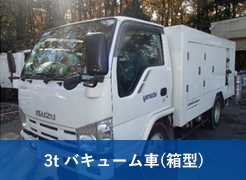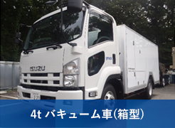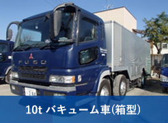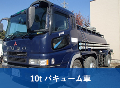 10t強力吸引車 1台 10tバキューム車 3台 4tバキューム車 4台 4tバキュームダンパー車 1台 3t強力吸引車 1台 3tバキューム車 8台 |